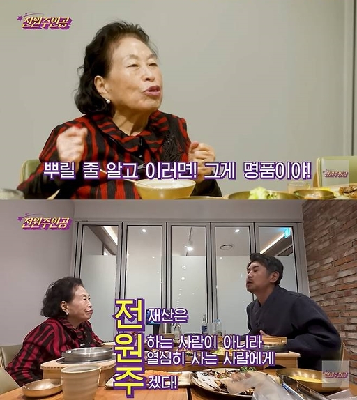 한 달 수입과 주식 수익률은 "비밀"이라면서도 "주식으로 손해는 안 봤다"고 설명했다. 김대희가 "집값이 21배 올랐다고 하는데 진짜 부럽다"고 하자, 전원주는 "등산하다가 샀다. 똥값으로 샀는데 개발되니까 오르더라"고 귀띔했다. "티끌모아 태산이다. 쓰는 재미보다 모으는 재미를 가져라"면서 "이제 갈 때가 되니까 욕심이 없다"고 했다.