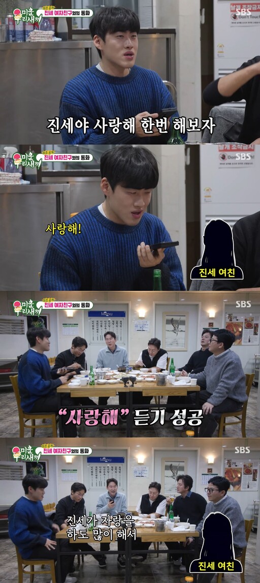이에 조진세는 여자친구가 전화를 받자마자 "사랑해"라고 했다.