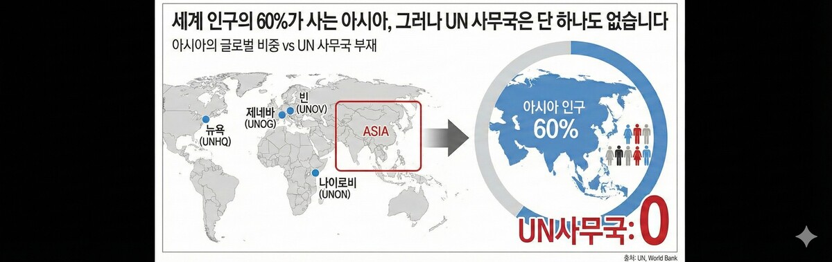 오늘날 국제질서는 거대한 전환점에 서 있다. 전 세계 인구의 60%가 거주하고 글로벌 경제 성장을 견인하는 아시아-태평양 지역의 위상은 날로 높아지고 있지만, 국제기구의 공간적 배치는 여전히 냉전기 질서에 머물러 있다. 현재 UN 사무국은 뉴욕, 제네바, 빈, 나이로비 등 서구와 아프리카에 편중되어 있다. 이러한 ‘글로벌 불균형’을 해소하고 아시아의 대표성을 강화하기 위한 실천적 대안으로 ‘제5 UN 사무국 한국 유치’ 운동이 국제사회 일각에서 논의되고 있다.