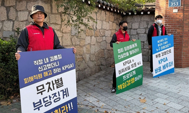 KPGA 노조는 "부당하게 해고된 피해 직원들의 복직이 즉각 이뤄져야 한다"며 "KPGA는 더 이상 책임을 회피하지 말고 조직 정상화를 위한 실질적인 경영 회복 조처에 나서야 한다"고 촉구했다.