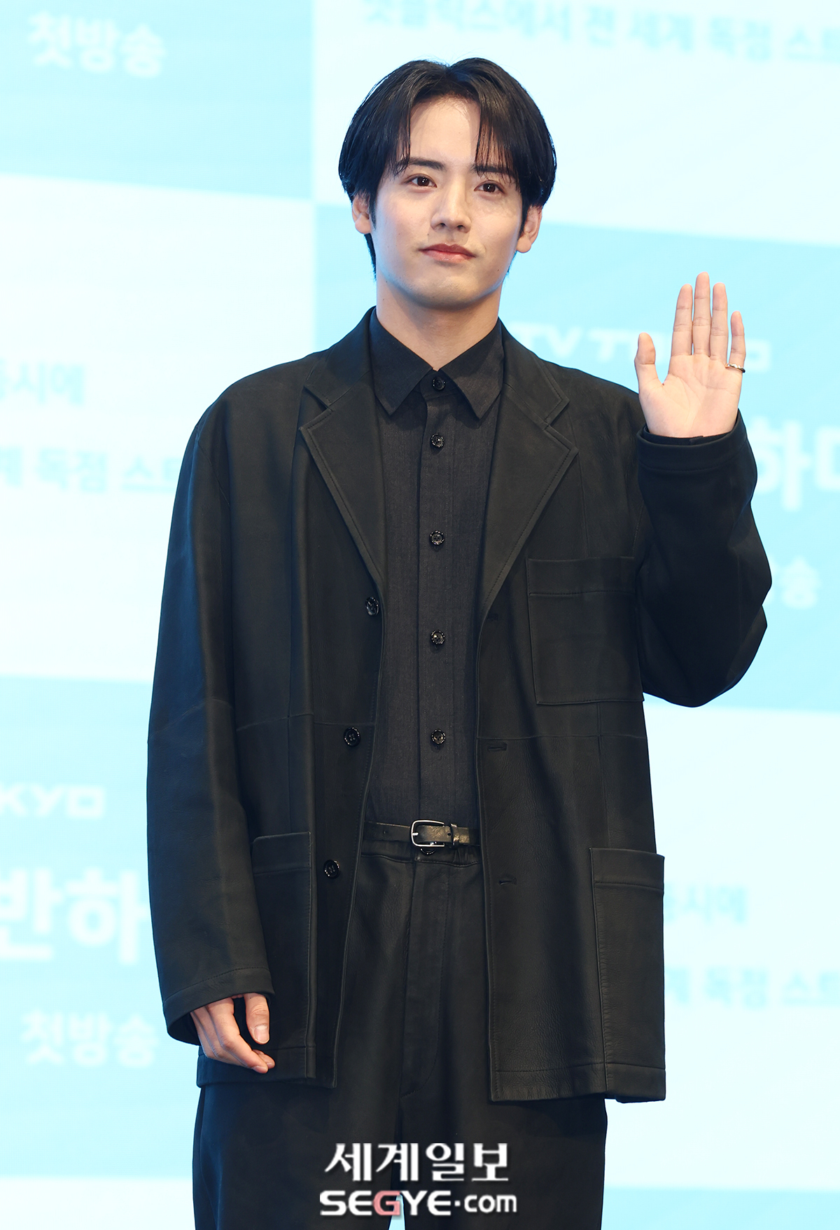일본 배우 아카소 에이지가 7일 서울 신도림 더 세인트 웨딩에서 열린 일본 TV TOKYO 드라마 프리미어23 ‘첫입에 반하다’ 제작발표회에 참석해 포즈를 취하고 있다.