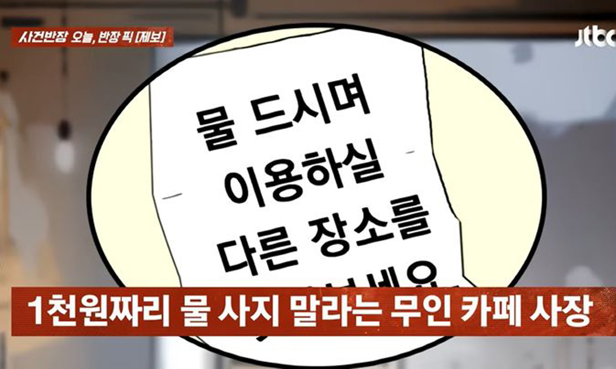 무인 카페에서 1000원짜리 물만 주문해 이용했다는 이유로 사장으로부터 사실상 출입을 제한하는 내용의 쪽지를 받았다는 사연이 전해져 논란이 되고 있다.