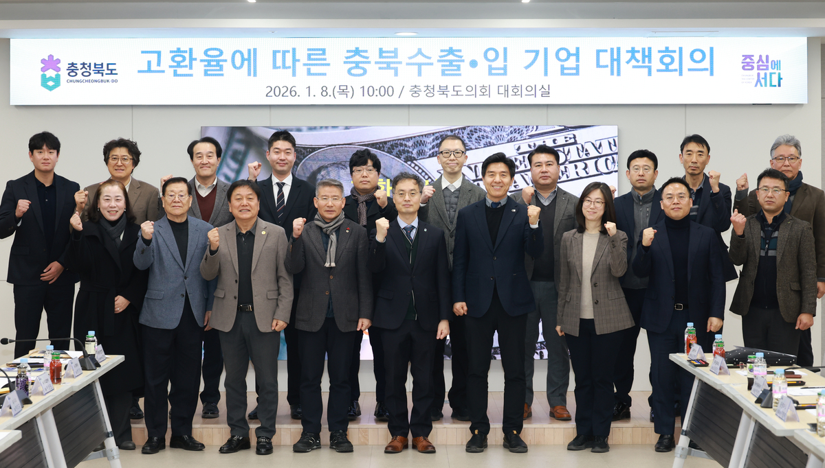 도는 8일 도의회 다목적회의실에서 ‘고환율에 따른 충북 수출입 기업대책회의’를 개최했다. 코트라(KOTRA) 충북지원본부, 한국무역협회 충북지역본부 등 수출 관계기관과 충북연구원, 도내 수출·입 기업 관계자 등이 참석해 고환율이 도내 수출입 기업에 미치는 영향 등을 점검했다.
