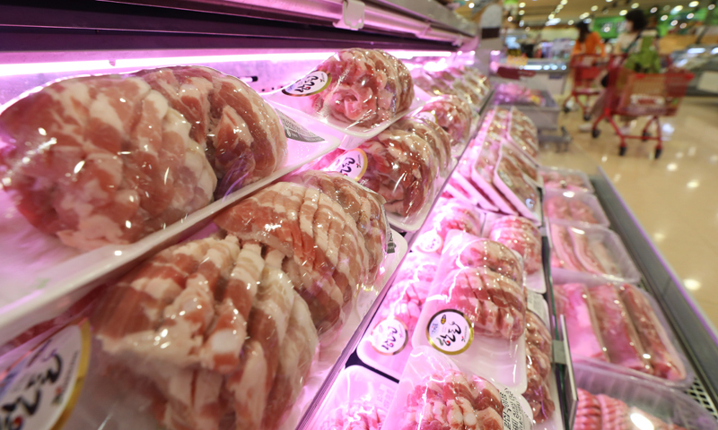 서울시내 마트에 돼지고기가 진열돼 있다. 뉴시스