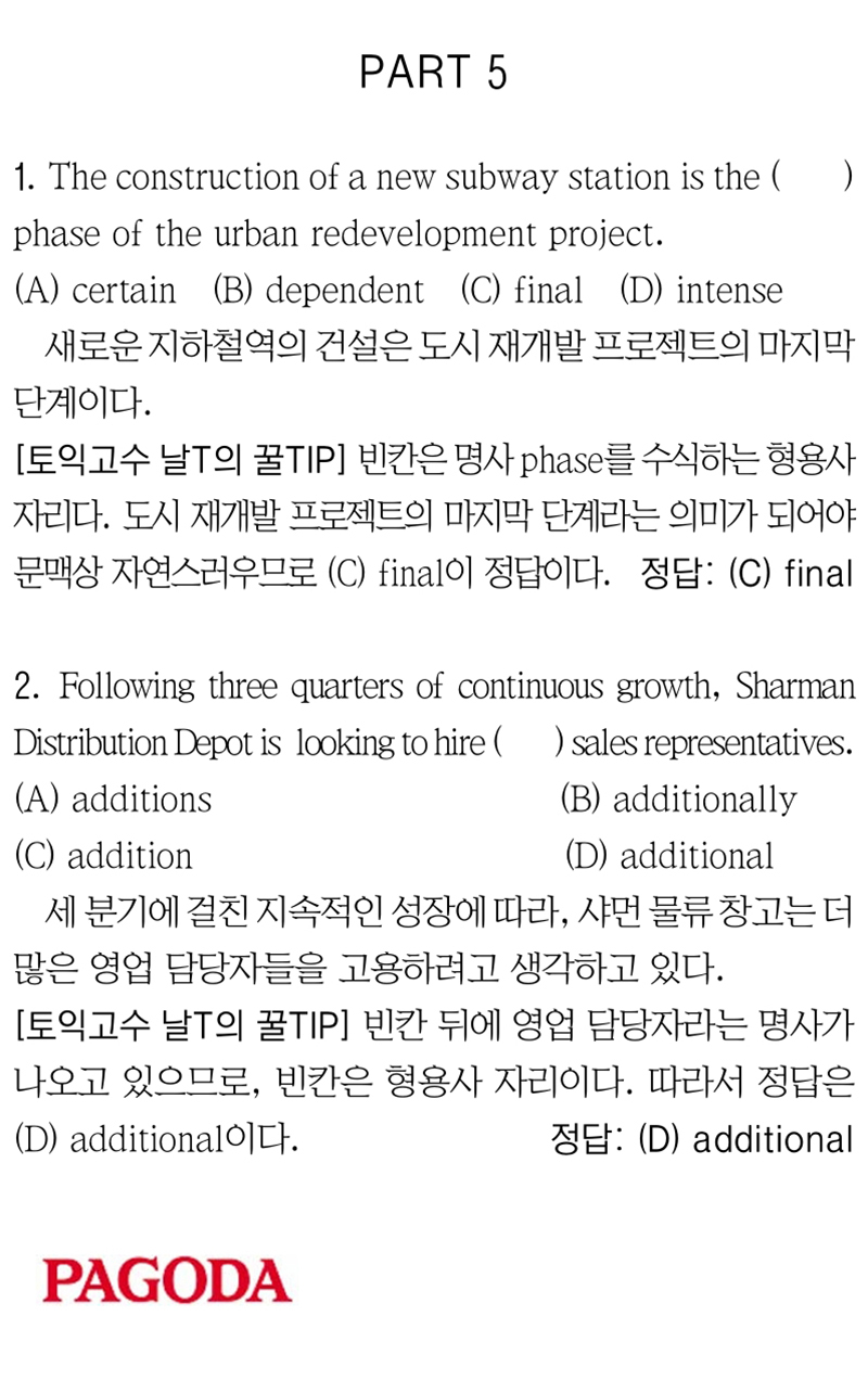 [파고다 강남 끝토익 RC김나래] PART 5