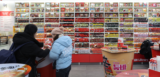 11일 서울 마포구 CU 홍대상상점에서 외국인 관광객들이 컵라면을 먹고 있다. K푸드 대표 주자로 옥스퍼드 사전에까지 등재된 한국 라면은 지난해 사상 처음으로 연간 수출 15억달러를 넘어섰다.