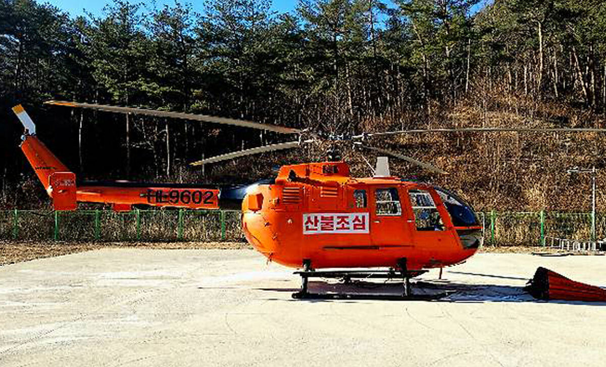 울진군이 올해 1월부터 배치하는 산불 진화 헬기는 독일산 BO-105S 기종으로, 최대 담수량이 1000리터에 이른다.