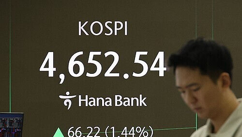 (서울=연합뉴스) 임화영 기자 = 12일 서울 중구 하나은행 딜링룸 현황판에 코스피 지수가 표시되고 있다. 이날 코스피는 53.57포인트(1.17%) 오른 4,639.89로 개장하며 역대 최고치를 또 경신했다. 2026.1.12 hwayoung7@yna.co.kr