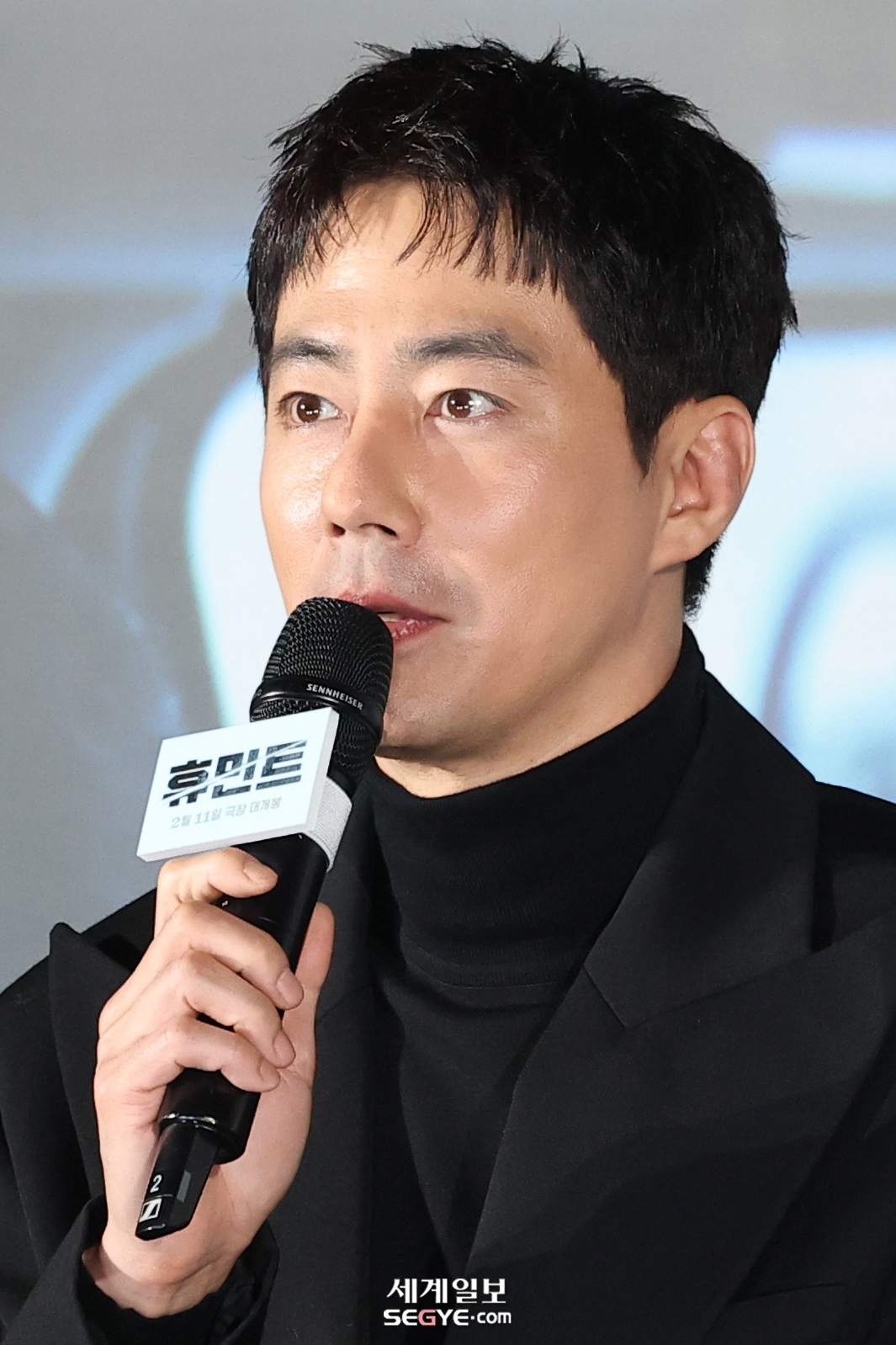 배우 조인성이 12일 서울 광진구 롯데시네마 건대입구에서 열린 영화 '휴민트‘(감독 류승완) 제작보고회에 참석해 인사말을 하고 있다.