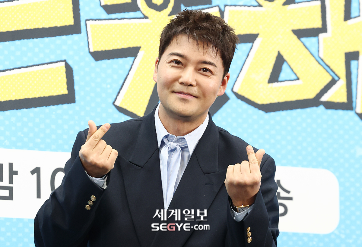 방송인 전현무가 12일 서울 마포구 상암동 스탠포드 호텔에서 열린 JTBC ‘혼자는 못 해’의 제작발표회에 참석해 포즈를 취하고 있다.