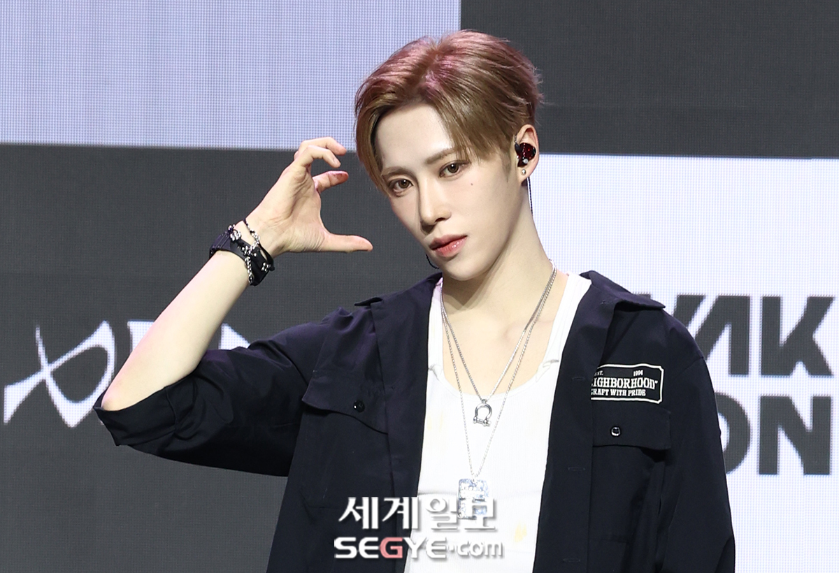 그룹 알파드라이브원 아르노가 12일 오후 서울 용산구 블루스퀘어 SOL트래블홀에서 열린 첫 번째 데뷔 미니 1집 'EUPHORIA(유포리아)' 발매 기념 쇼케이스에 참석해 포즈를 취하고 있다.