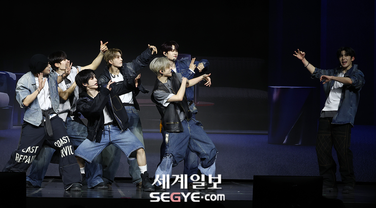 그룹 알파드라이브원이 12일 오후 서울 용산구 블루스퀘어 SOL트래블홀에서 열린 첫 번째 데뷔 미니 1집 'EUPHORIA(유포리아)' 발매 기념 쇼케이스에 참석해 열띤 공연을 펼치고 있다.