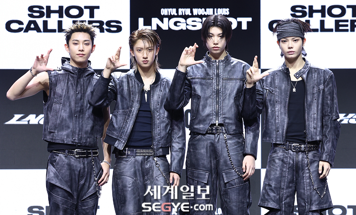 박재범이 제작한 첫 보이그룹 롱샷이 13일 서울 영등포구 명화 라이브홀에서 열린 데뷔 EP '샷 콜러스'(SHOT CALLERS)의 쇼케이스에 참석해 포즈를 취하고 있다.