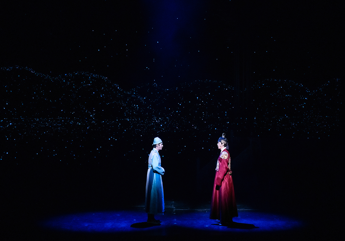 ‘한복 입은 남자’는 “장영실이 없었다면 지금 우리가 누리는 과학 기술도 존재하지 않았을 수 있다”는 전제에서 ‘장영실이 레오나르도 다 빈치의 스승’이라는 ‘숨겨진 진실’을 제시한다. 이렇게 만들어진 ‘노비 출신 천재가 신분 제약을 극복하고 동서양 과학 교류의 선구자가 되었다’는 메시지가 과연 큰 울림을 만들 수 있을지 의문이다. 서울 충무아트센터 대극장에서 3월 8일까지.