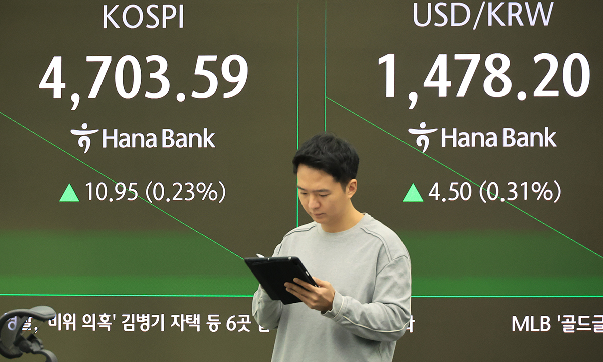 14일 서울 중구 하나은행 본점 딜링룸에서 직원이 증시와 환율을 모니터하고 있다. 연합뉴스