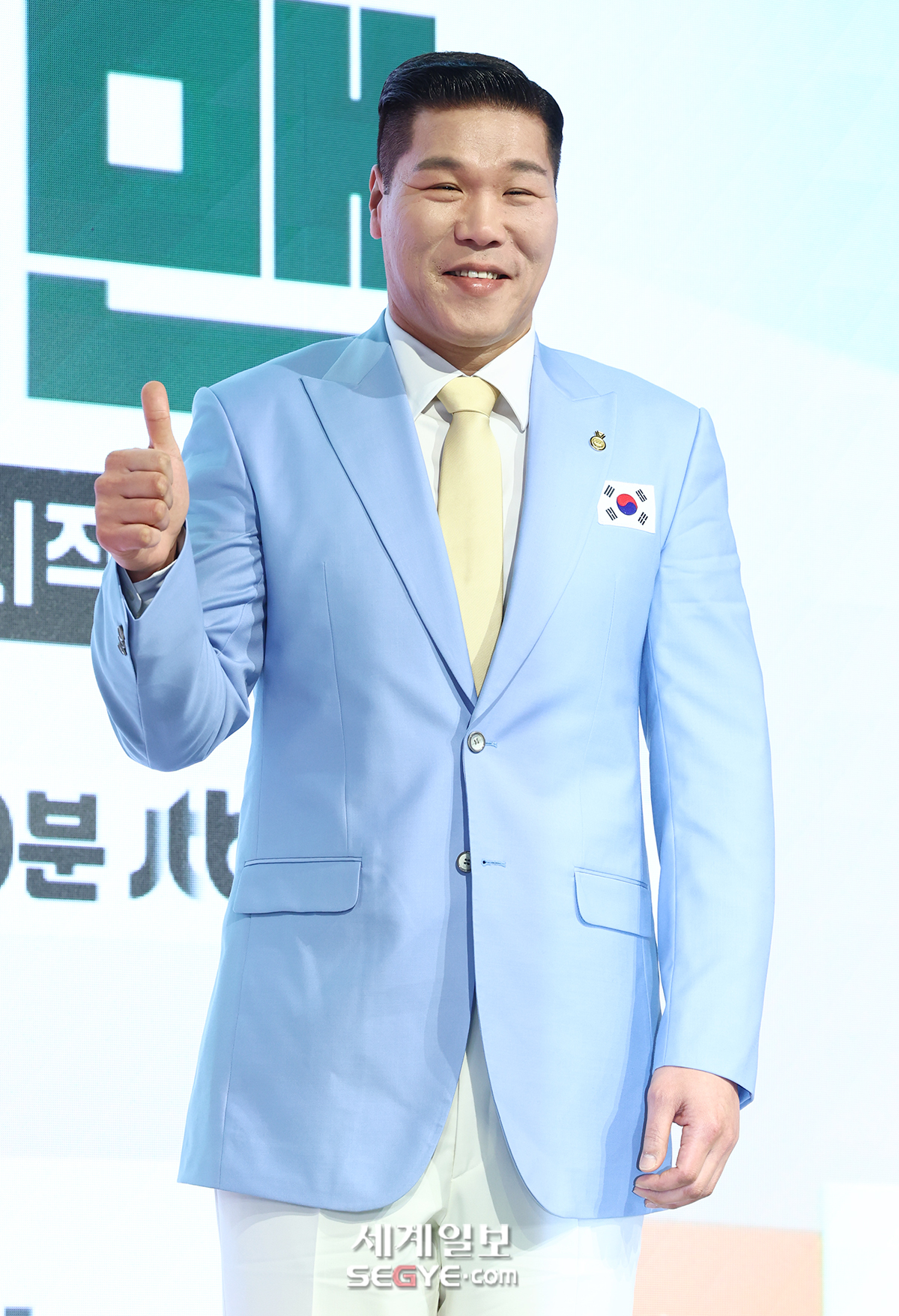 방송인 서장훈이 14일 오후 서울 영등포구 페어몬트호텔에서 열린 JTBC 예능 '예스맨' 제작발표회에 참석해 포즈를 취하고 있다.
