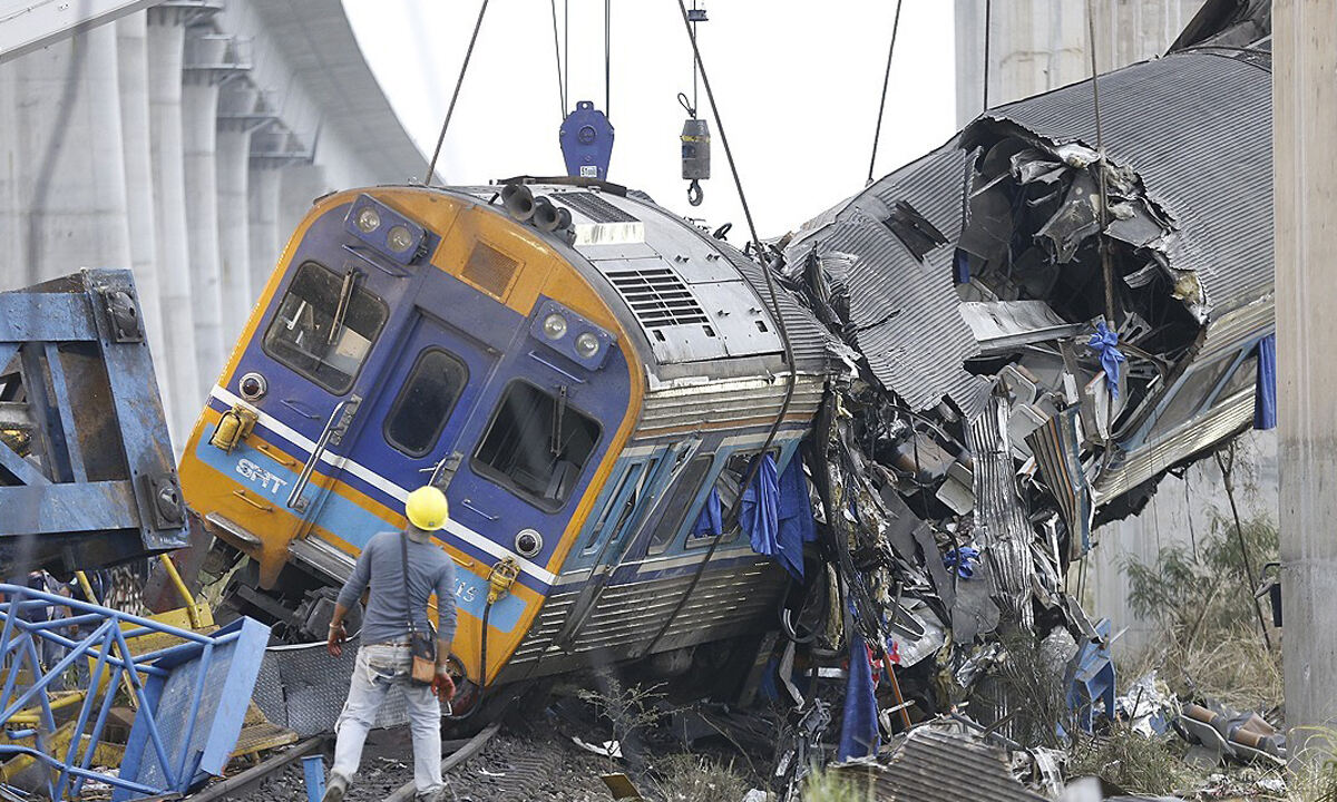 앞서 전날 오전 나콘라차시마주 시키오 지역의 고속철도 고가철로 공사장에서 크레인이 붕괴, 공사장 아래 기존 철로로 떨어지면서 방콕에서 동부 우본라차타니주로 향하던 열차의 2개 객차를 덮쳤다.