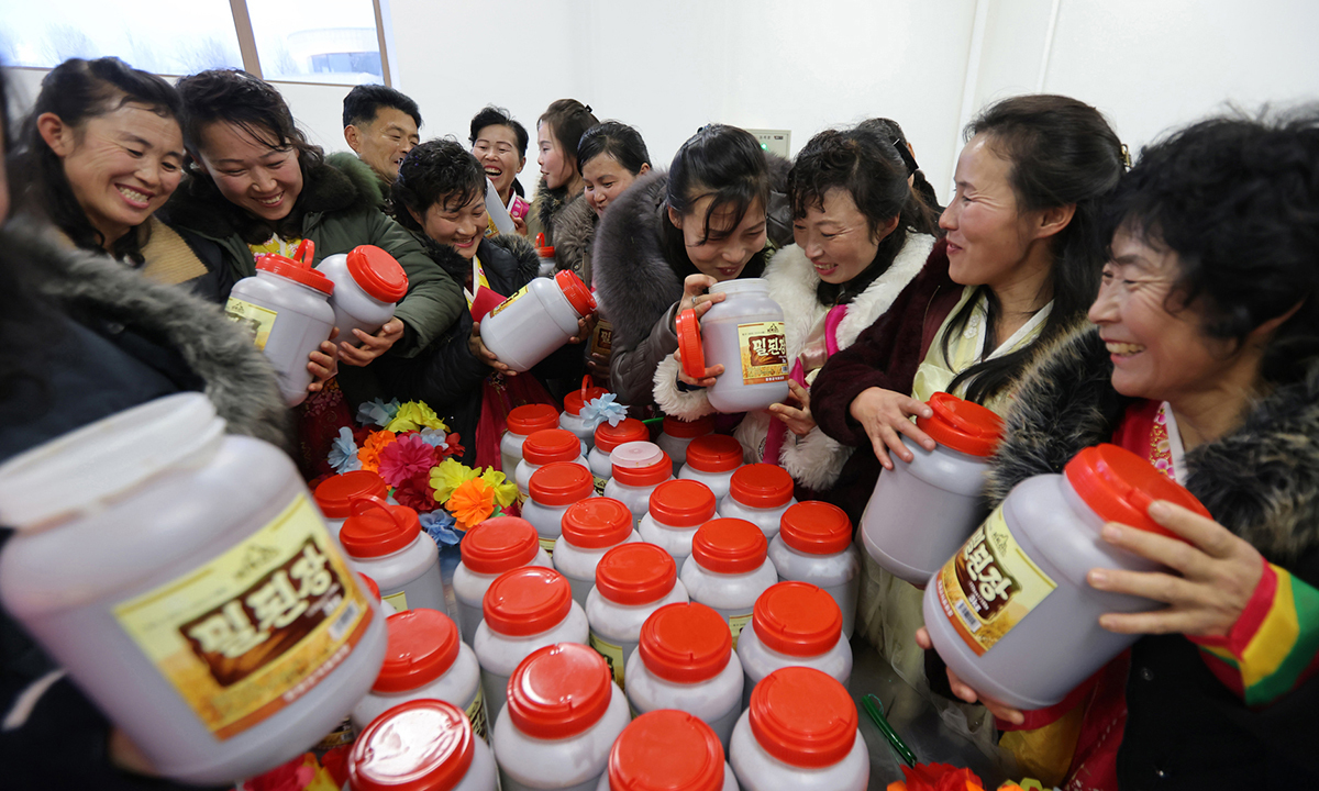 2025년 12월 25일 북한 주민들이 종합봉사소 제품들과 공장 내부시설을 둘러보고 있다. 평양 조선중앙통신·연합뉴스