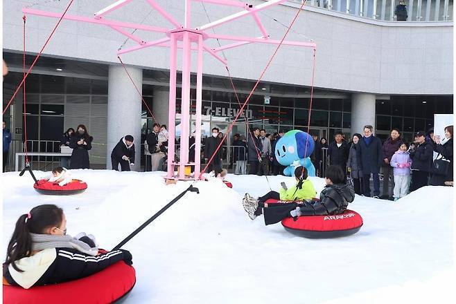 이곳에 문을 연 놀이 시설은 눈썰매, 얼음 썰매, 회전 썰매를 비롯해 컬링장과 에어바운스, 미니 바이킹 등 체험 공간으로 이뤄졌다. 안전을 위해 키 120㎝ 미만 아동의 경우 보호자를 동반해야 이용이 가능하다. 반면 회전 썰매와 미니 바이킹은 13세 이하만 탑승할 수 있다.
