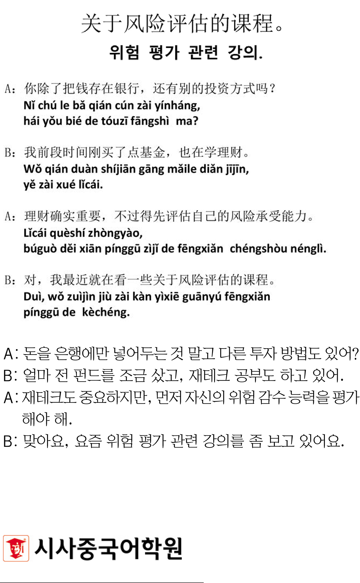 [시사중국어학원의 리얼 중국어 회화] 위험 평가 관련 강의.