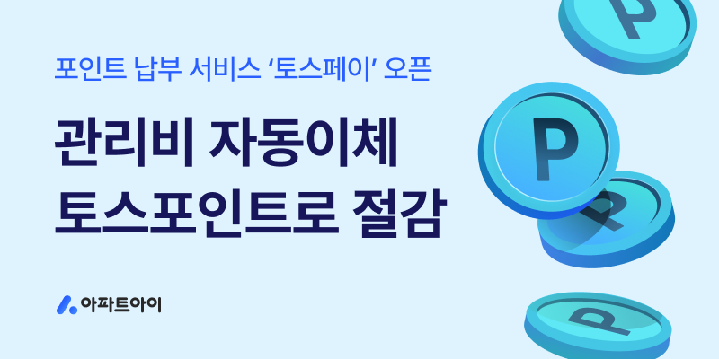 해당 서비스는 아파트아이 앱 내에서 관리비 자동이체를 설정할 때 사용할 수 있다. 특히 아파트아이가 제공하는 자체 포인트와 토스 포인트를 섞어 결제하는 ‘복합 결제’가 가능해져 납부 편의성이 높아졌다.