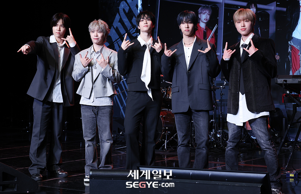 밴드 캐치더영 첫 정규 앨범 'EVOLVE(이볼브)' 발매 기념 쇼케이스가 19일 서울 강남구 청담동 일지아트홀에서 열렸다. 캐치더영이 포즈를 취하고 있다.