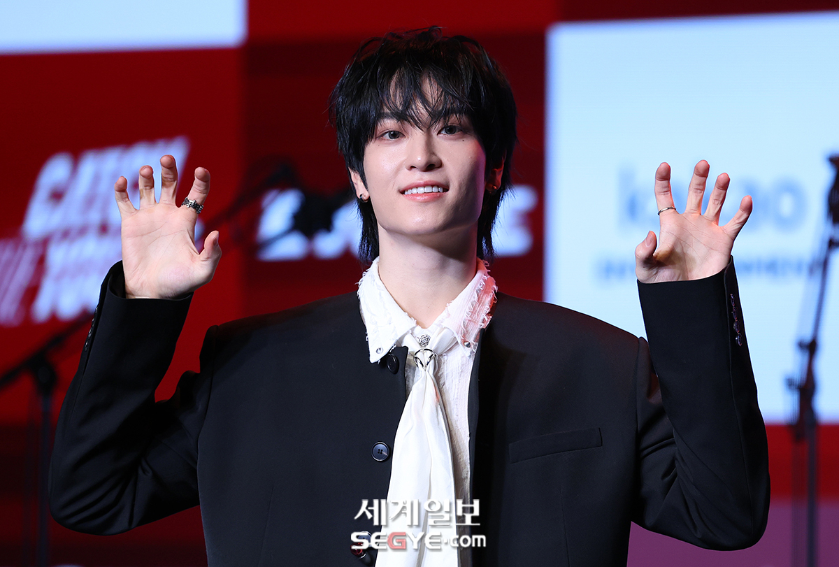 밴드 캐치더영 첫 정규 앨범 'EVOLVE(이볼브)' 발매 기념 쇼케이스가 19일 서울 강남구 청담동 일지아트홀에서 열렸다. 캐치더영 김남현이 포즈를 취하고 있다.