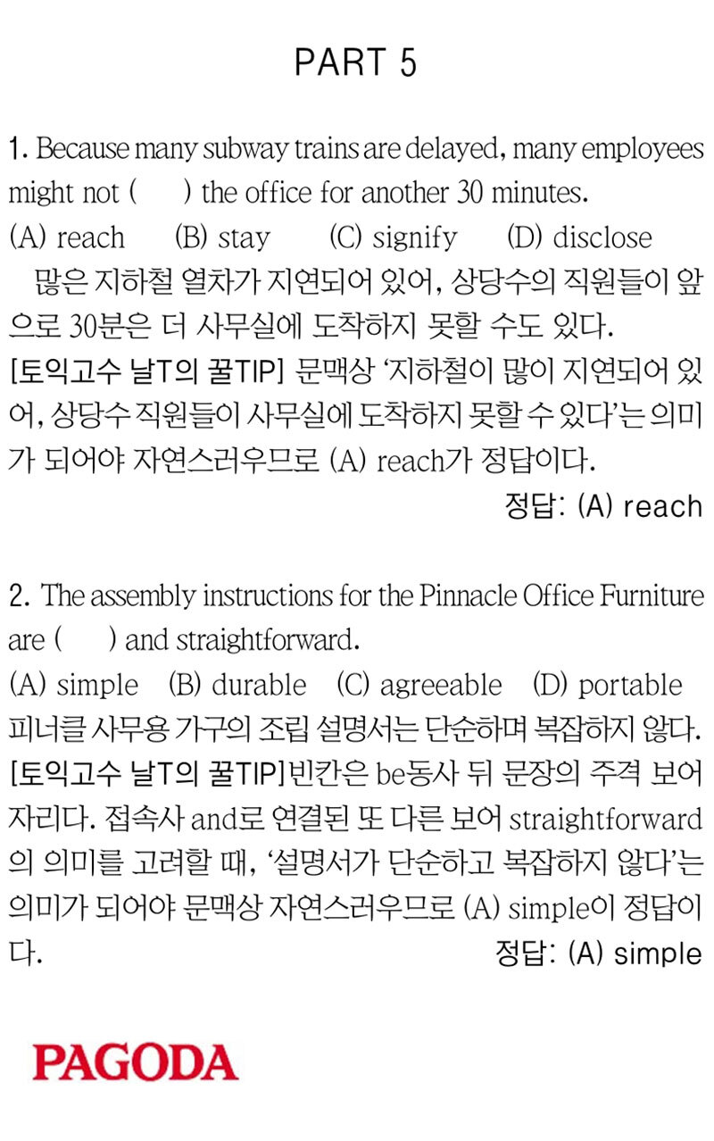 [파고다 강남 끝토익 RC김나래] PART 5