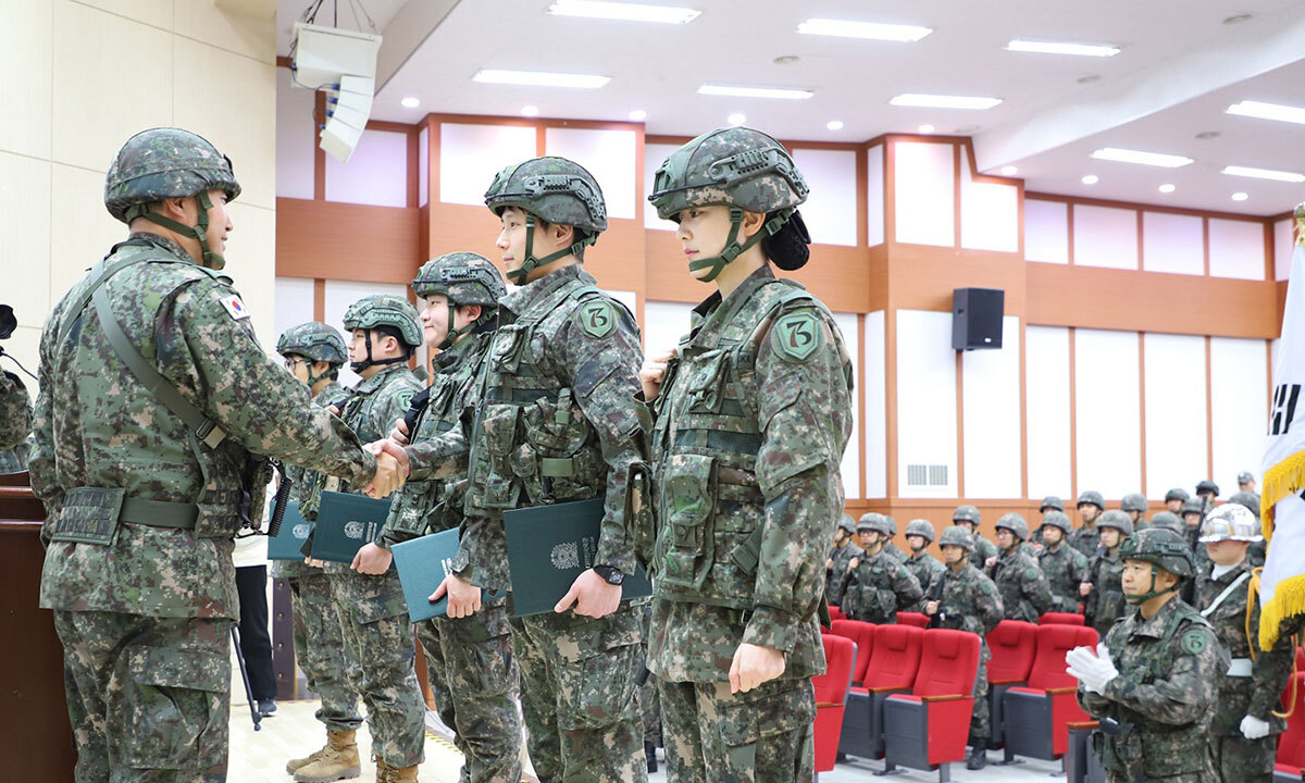 육군 73사단은 전군 최초로 상비예비군으로 구성된 완전예비군대대의 시범운영을 시작한다고 19일 밝혔다. 상비예비군은 인구감소에 따른 병력 자원 감소로 예비역 가운데 희망자를 선발해 평시에 훈련을 하고, 전시에는 각자의 임무를 수행할 수 있도록 하는 제도다. 생업과 군복무를 병행하며, 지역 방위와 중요시설 방호, 후방 안정화 작전 수행 등을 맡는다. 사진은 지난 17일 열린 완전예비군대대 창설식 모습.
