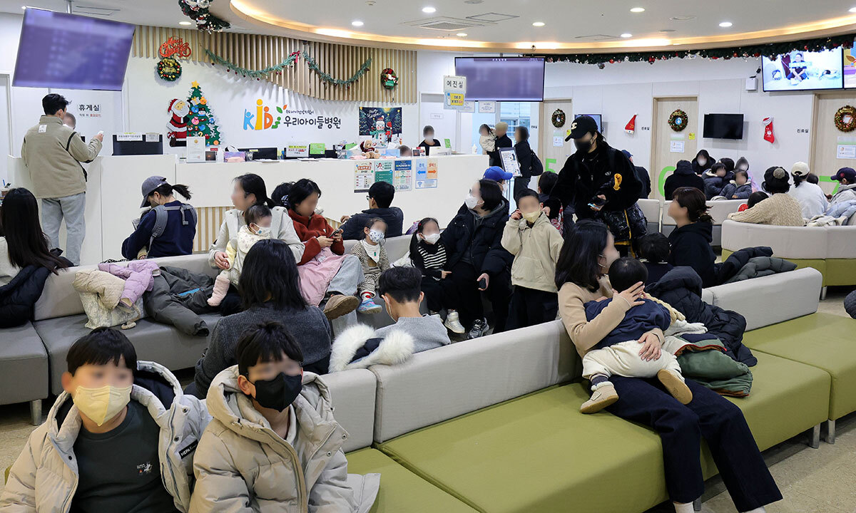 B형 독감이 소아·청소년을 중심으로 빠르게 확산하는 가운데 서울 성북구의 한 소아병원을 찾은 부모와 아이들이 19일 진료를 보기 위해 대기하고 있다.
