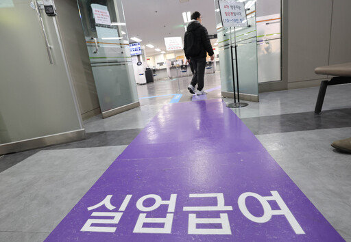 19일 서울 마포구 도화동 서울서부고용복지플러스센터를 찾은 실업급여 신청자들이 접수 창구로 향하고 있다. 고용노동부에 따르면 지난해 실업급여 지급액은 12조2851억원으로 역대 최대치를 경신했다.