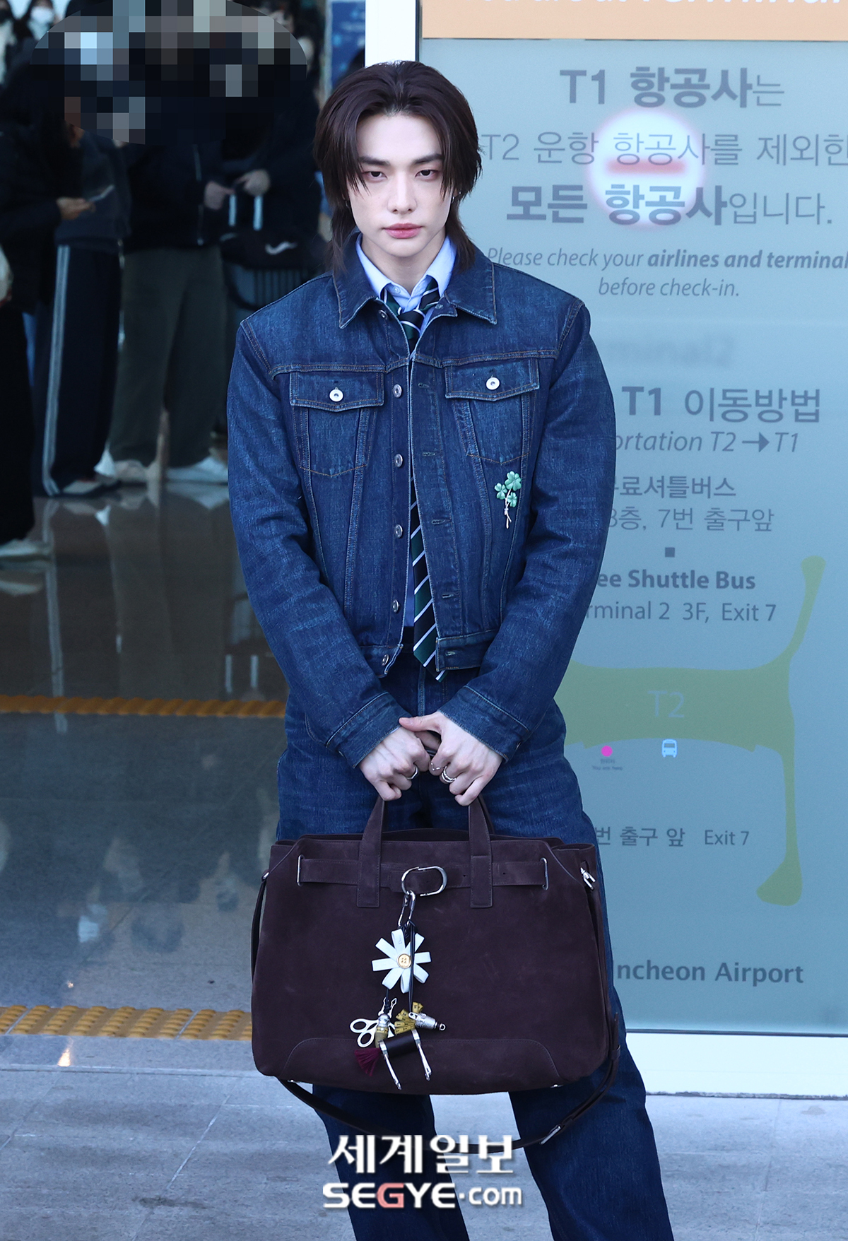 그룹 스트레이키즈 현진이 해외 일정을 위해 20일 인천국제공항을 통해 프랑스 파리로 출국하고 있다.