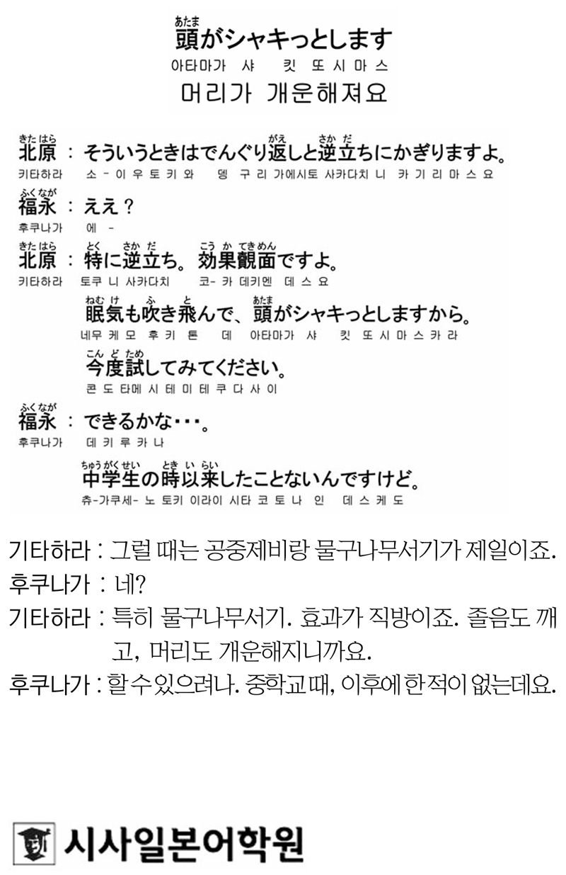 [시사일본어학원의 초단기 일본어 회화] 머리가 개운해져요