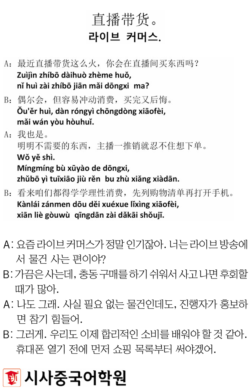 [시사중국어학원의 리얼 중국어 회화] 라이브 커머스.