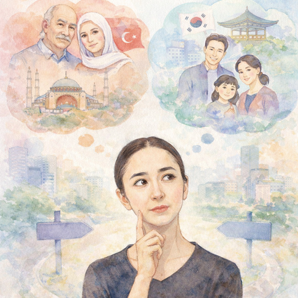한국에 외국인으로 살다 보면 종종 “한국에 정착할 생각이에요?”나 “언젠가는 튀르키예로 돌아갈 거예요?” 같은 질문을 받는다. 한국에 처음 왔을 때 나는 큰 고민 없이 “한국에 정착할 생각이에요”라고 대답했다. 하지만 많은 시간이 흐른 지금은 선뜻 이렇게 대답하지 못한다. 아직도 그 대답을 찾지 못했기 때문이다. 이 대답이 어려운 이유는 여러 가지 요인이 겹쳐 있기 때문이다.