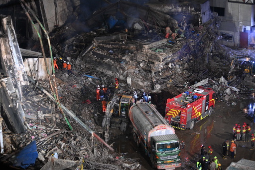 파키스탄 최대 도시 카라치의 4층짜리 쇼핑몰에서 발생한 대형 화재의 현장에서 20일(현지시간) 소방대원들이 구조작업을 벌이고 있다. 현지 소방당국에 따르면 17일 오후 발생한 화재로 이날까지 소방관 1명을 포함해 27명이 숨졌으며 57명은 여전히 실종 상태다. 경찰은 실종자 대부분이 사망한 것으로 추정한다며 구조대원들이 잔해 속에서 시신을 찾고 있다고 밝혔다.
