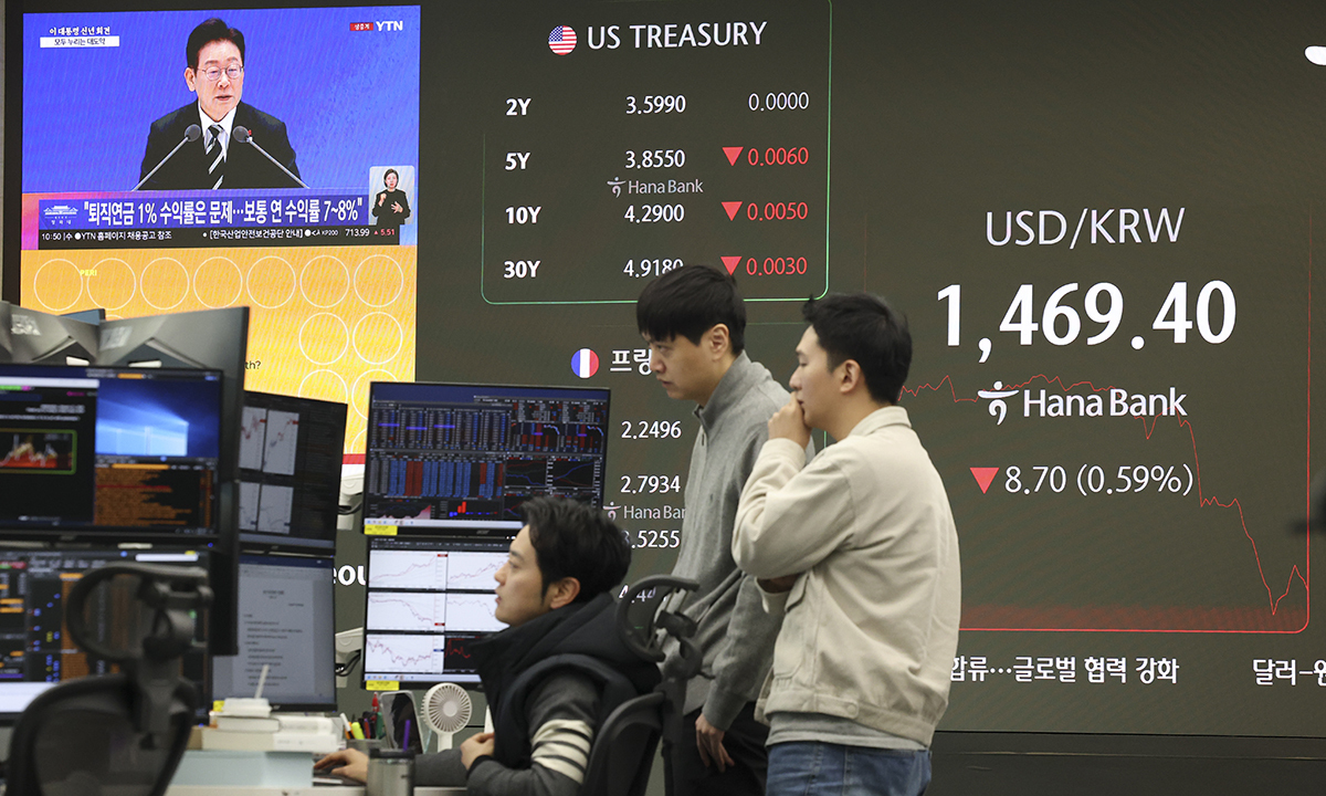 원·달러 환율이 올해 들어 처음으로 장중 1480원을 넘긴 21일 이재명 대통령이 “관련 책임 당국에 의하면 한두 달 정도 지나면 (환율이) 1400원 전후로 떨어질 것이라 예측하고 있다”고 말했다. 이 대통령의 발언이 나오자 환율은 1460원대 후반까지 하락했다가 1471.3원에 주간 거래(오후 3시30분 기준)를 마쳤다.