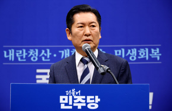 정청래 더불어민주당 대표는 22일 국회에서 긴급 기자회견을 열고 조국혁신당과의 합당을 전격 제안했다.