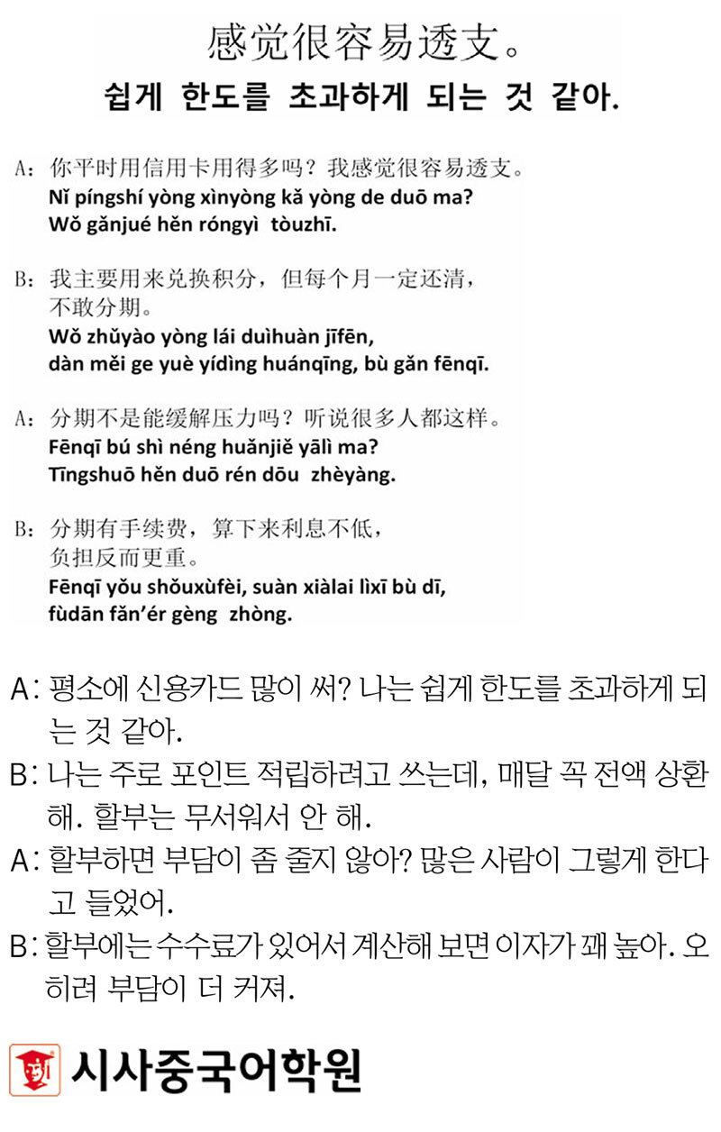 [시사중국어학원의 리얼 중국어 회화] 쉽게 한도를 초과하게 되는 것 같아.