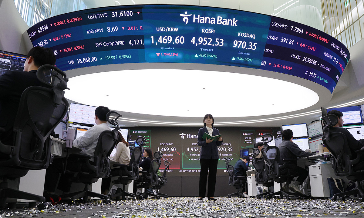 코스피가 장중 5019.54까지 오른 22일 서울 중구 하나은행 딜링룸 전광판에 코스피 마감 시세가 나오고 있다. 뉴시스