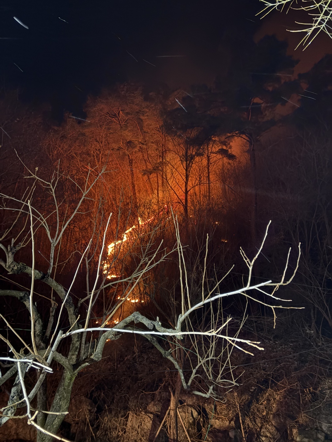 산림 당국은 화재 발생 직후 대응 1단계를 발령하고 장비 63대와 인력 374명을 투입해 밤샘 진화 작업을 벌였다.