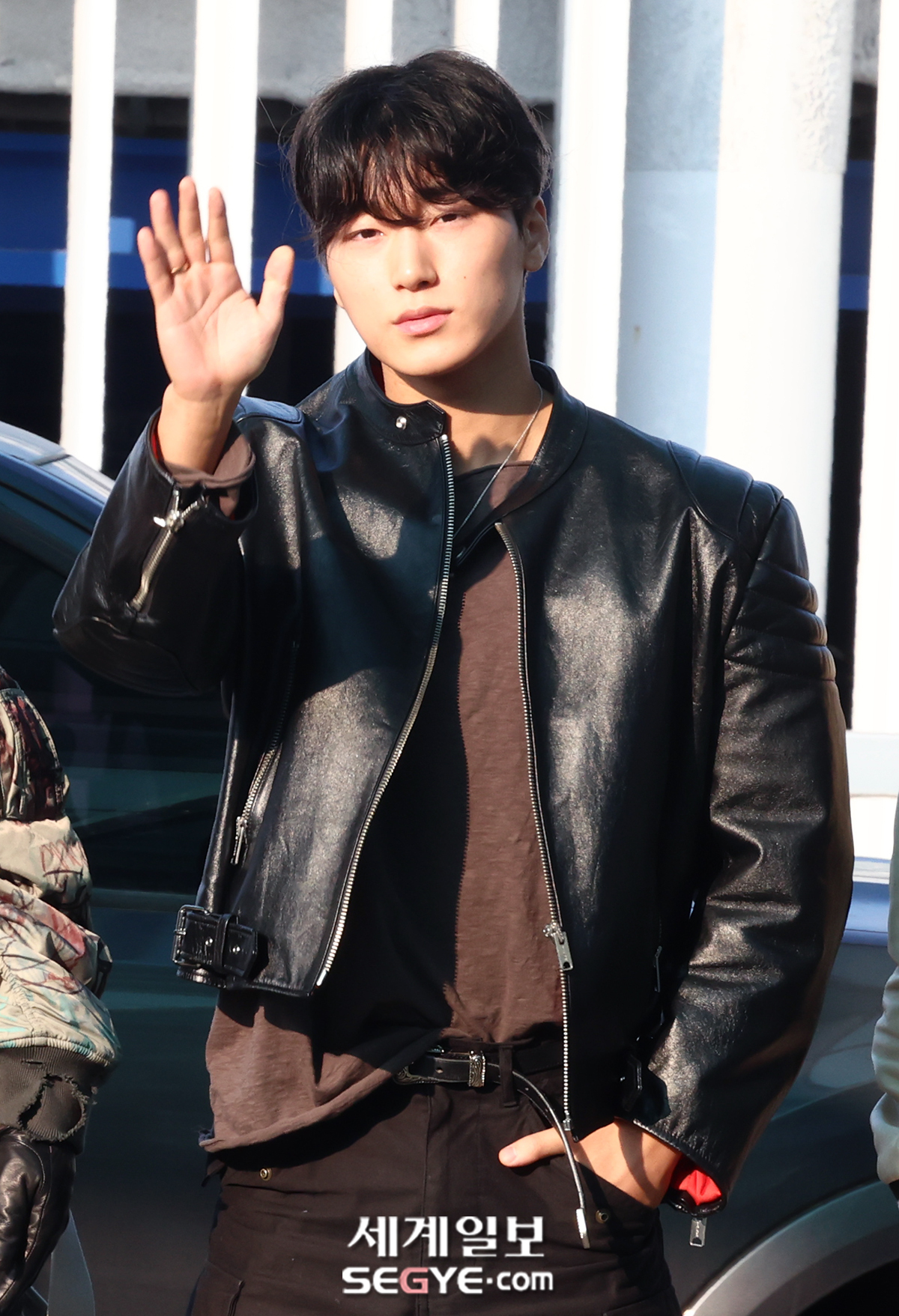 그룹 에이티즈 산이 23일 해외 일정차 인천 중구 운서동 인천국제공항을 통해 대만 타이베이로 출국하고 있다.