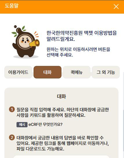 맥챗은 진흥원이 보유∙관리 중인 한의약 데이터를 기반으로 구축한 서비스로, 한의표준임상진료지침(CPG) 관련 정보와 한의약 제도∙연구∙기초 정보 등을 폭넓게 포함했다.