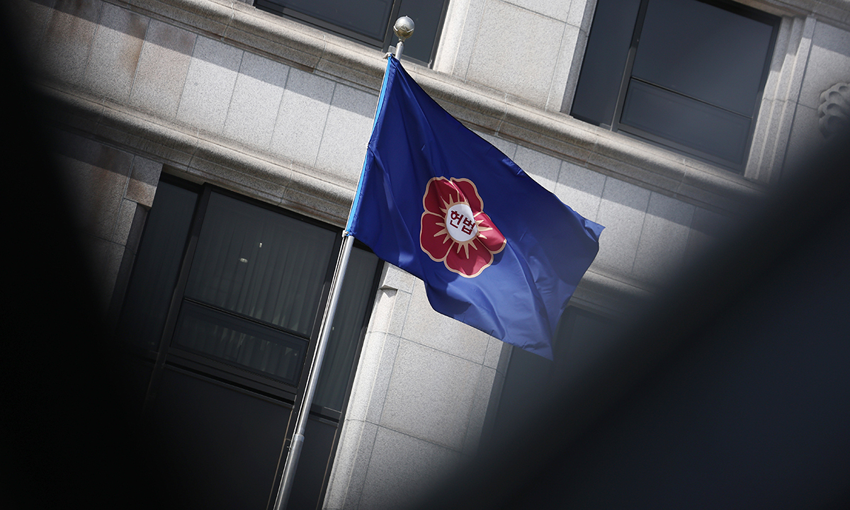서울 종로구 헌법재판소에서 깃발이 바람에 날리고 있다. 연합뉴스