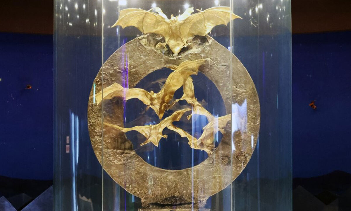 황금박쥐상은 가로 1.5m, 높이 2.1m 규모 은으로 된 원형 조형물에 오로지 순금으로 만든 6마리의 황금박쥐가 날개를 펼치고 날아오르는 모습을 형상화한 조형물이다.