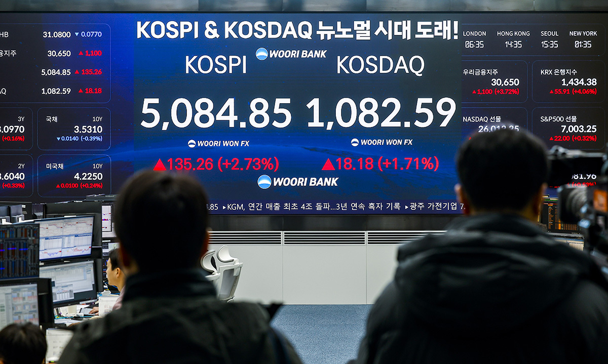 한국거래소에 따르면 코스피는 이날 전장보다 135.26포인트(2.73%) 오른 5084.85로 장을 마쳤다. 종가기준 첫 5000선 달성일 뿐 아니라 전날 기록한 장중 최고치(5023.76) 기록도 갈아치웠다.