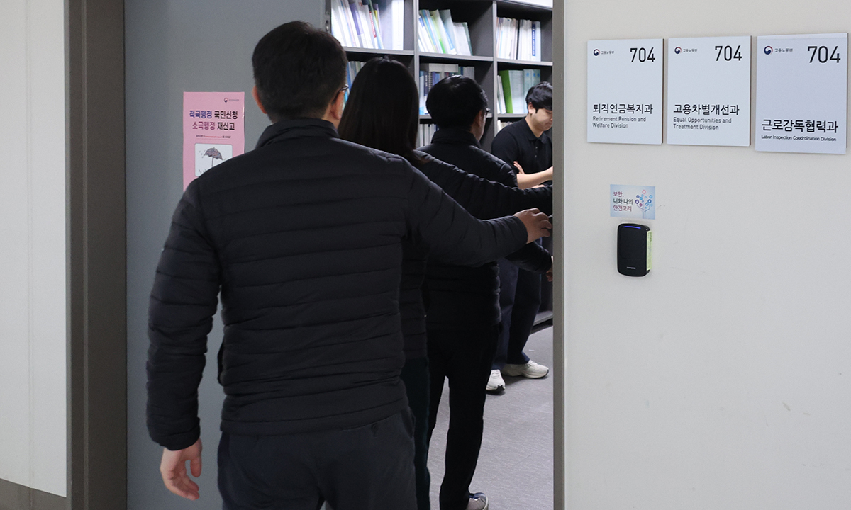 특검팀은 27일 오전 10시부터 근로자퇴직급여 보장법(퇴직금법), 직권남용 권리행사 방해 등 혐의로 고용부 세종청사의 근로기준정책과와 퇴직연금복지과, 서울지방고용노동청 스마트워크센터 사무공간 등에 대한 압수수색·검증영장을 진행했다. 고용부 관계자들의 휴대전화에 대한 압수수색도 함께 이뤄졌다.