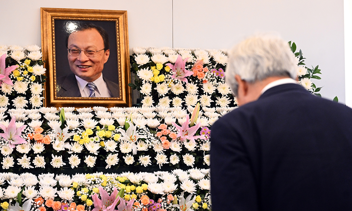 이 전 총리 영정 사진 옆에는 전날 이재명 대통령이 추서한 국민훈장 무궁화장이 놓였다.