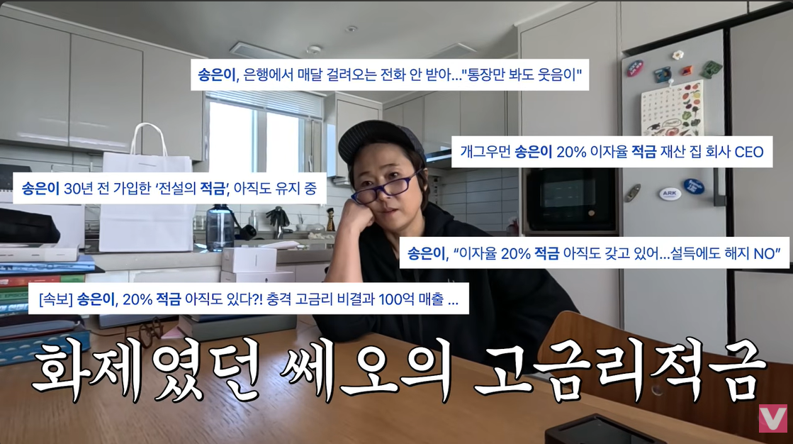 이날 제작진은 송은이의 집에 방문해 ‘이율 20% 적금 통장’에 대해 질문했고, 송은이는 이에 대해 차분히 자신의 입장을 밝혔다.