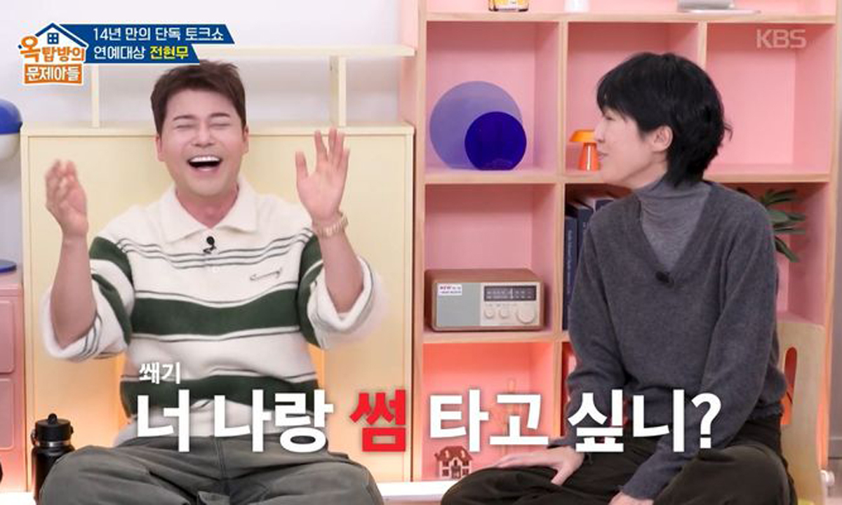 29일 오후 방송된 KBS 2TV 예능 프로그램 '옥탑방의 문제아들'에선 전현무가 게스트로 출연했다.